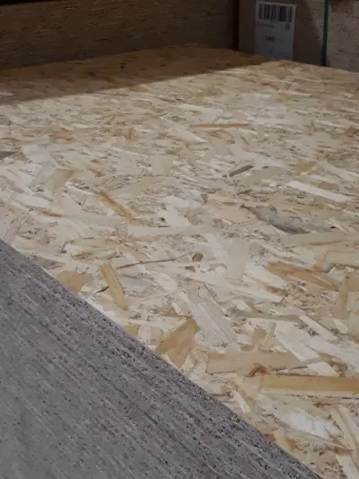 OSB, or oriented strand board, is a type of engineered wood. Manufacturers make it by pressing together layers of long, thin wood strands with glue, lining them up in specific directions to boost strength.